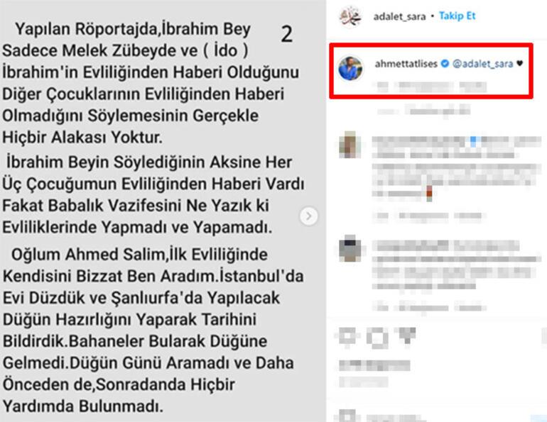 Adalet Sara, eski eşi İbrahim Tatlıses’in “İdo ve Melek Zübeyde dışında hiçbir çocuğumun düğününden haberim olmadı” iddiasına sosyal medya hesabından yanıt verdi.