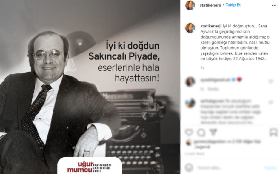 Özge Mumcu Aybars paylaştığı yazıda şu ifadelere yer verdi: “İyi ki doğmuştun… Sana Ayvalık’ta geçirdiğimiz son doğum gününde annemle aldığımız o kareli gömleği hatırladım, nasıl mutlu olmuştun. Toplumun gönlünde yaşadığını bilmek, bize senden kalan en büyük hediye. 22 Ağustos 1942…”