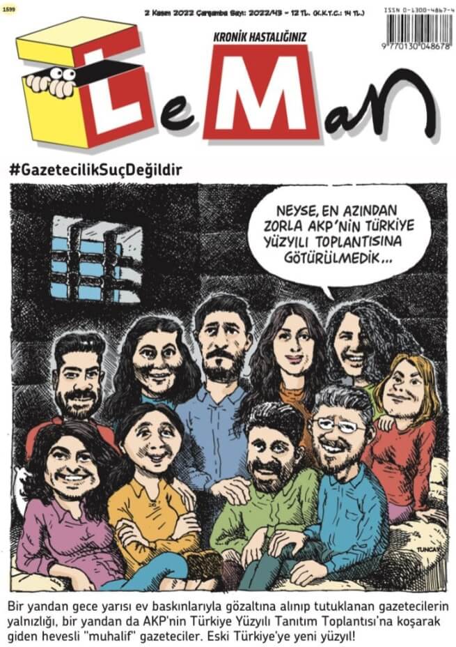 Haftalık mizah ve karikatür dergisi LeMan, bu haftaki kapağına Ankara’da gözaltına alındıktan sonra tutuklanan Mezopotamya Ajansı (MA) ve JİNNEWS çalışanı 9 gazeteciyi taşıdı.