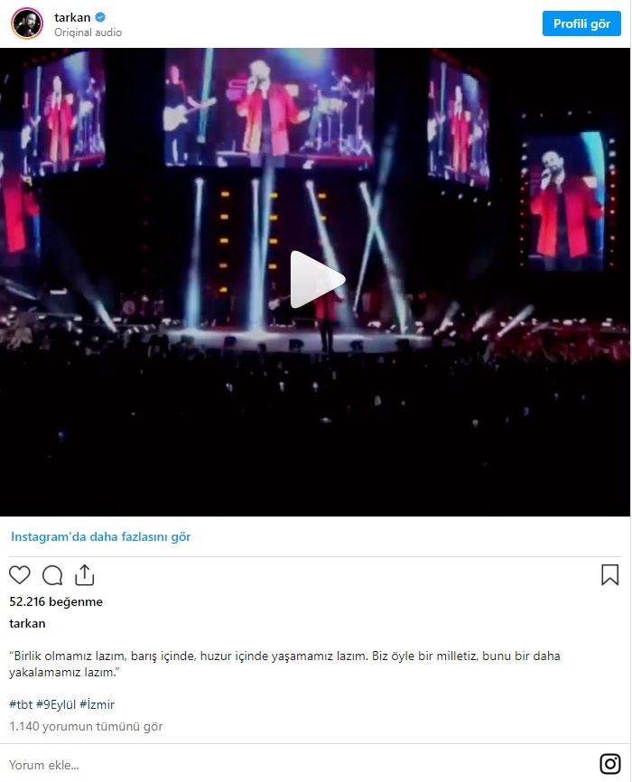 Paylaşımını “Birlik olmamız lazım, barış içinde, huzur içinde yaşamamız lazım. Biz öyle bir milletiz, bunu bir daha yakalamamız lazım” sözleriyle paylaşan Tarkan, videoda şu açıklamayı yapıyor: