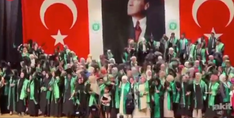 Ancak Yeni Akit’in haberle birlikte yayınladığı videoda gençlerin büyük önder Mustafa Kemal Atatürk’ün fotoğrafının ve Türk Bayraklarının altında 10. Yıl Marşı’na eşlik ederek keplerini salladığı, ailelerin ise büyük bir keyifle çocuklarının bu görüntülerini telefonları ile ölümsüzleştirmeye çalıştığı görüldü.