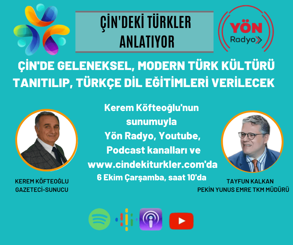 “Doğudaki Tanıtım Elçilerimiz: Çin’deki Türkler” programının bu haftaki konuğu Pekin Yunus Emre Türk Kültür Merkezi Müdürü Tayfun Kalkan oldu.