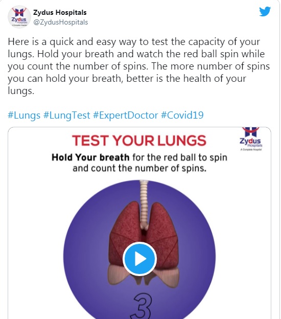 Zydus Hospitals’in yayınladığı teste göre nefesinizi tutun ve turları sayarken kırmızı topun dönüşünü izleyin. Ne kadar fazla tur boyunca nefesinizi tutabiliyorsanız, teste göre akciğer sağlığınız o kadar iyi.