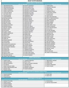 AK Parti kurucular listesinden şimdiye kadar, Ali Babacan, Erdal Önder, Fatma Ünsal Bostan, İdris Naim Şahin, İsmail Tatlıoğlu, Mehmet Gazioğlu, Nail Berzek, Yaşar Öztürk, Mustafa Öztürk, Raşit Küçük, Yasemin Şimşek, Yaşar Yakış’ın adı çıkarıldı.