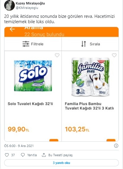 TUVALET KAĞIDINA GELEN ZAM HATIRLATILDI