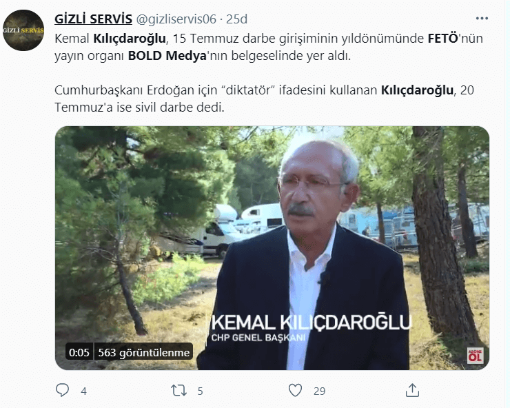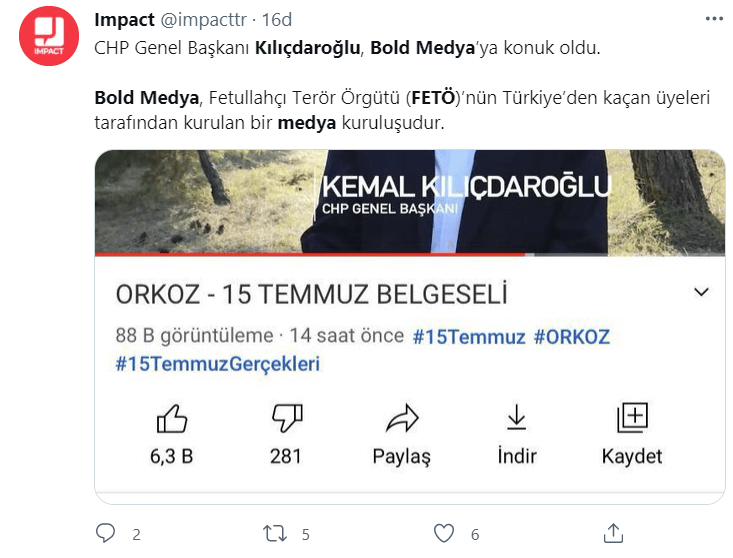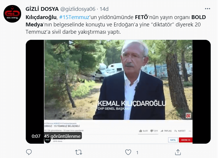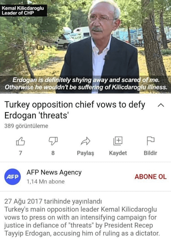 CHP lideri Kemal Kılıçdaroğlu’nun 2017 yılında AFP News Agency kanalına verdiği röportajı FETÖ’cü yayın organı BoldMedya çalarak kendi Youtube kanallarında yayınladı.