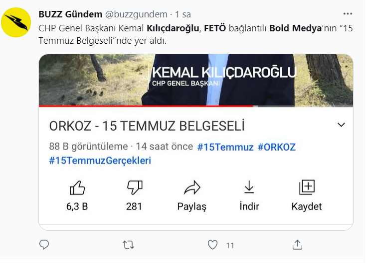 AKP’li hesaplar FETÖ’cü yayın organının hesabını paylaşarak “Kılıçdaroğlu FETÖ yayın organına konuştu” yalanına ortak oldu.