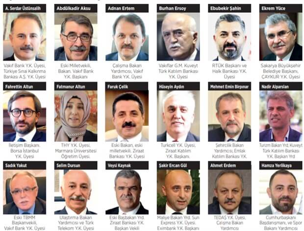 İktidarın eski ve yeni siyasetçileri, bürokratları, AKP’lilerin yakınlarını zenginleştirme aracı olarak yönetim kurulu üyeliklerini kullanma alışkanlığı kamunun hemen her alanına yayıldı. Birden fazla maaş alanların sayısı her geçen gün artıyor. Esas görevinin sağladığı maaşla yetinmeyen yandaş isimler, iki üç yerden maaş alarak zenginleşiyor. Yönetim kurulu üyelikleri ve her toplantı başına aldıkları “huzur hakları” ile “köşeyi dönenler” arasında belediye başkanları, bakan yardımcılarının yanında AKP’lilerin akrabaları da bulunuyor.