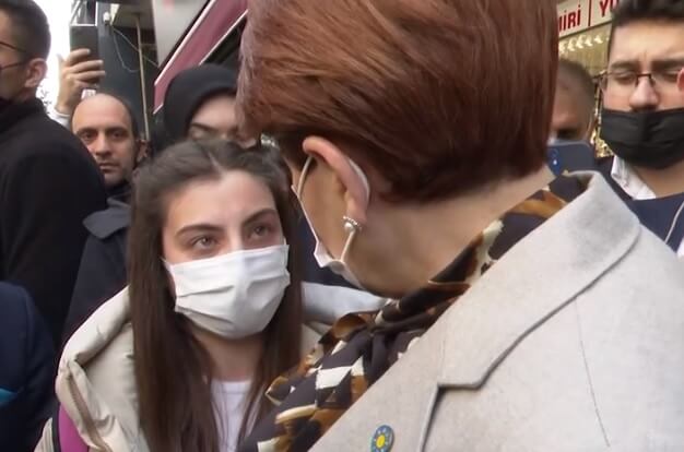 Ağlayan Cemre’ye sarılan Akşener, ”emre bu yaşta ağlıyorsun be kızım… Yuh olsun bize be…” ifadelerini kullandı.