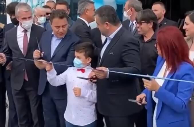 Tören için yanına bir çocuğu çağıran Ali Babacan, Rize’de katıldığı törende kurdeleyi erken kesti için kafasına vurarak uyaran Erdoğan’ı hatırlatarak, “Yalnız dikkat et; kafana mikrofon ya da yumruk gelmesin” ifadelerini kullandı. Babacan’ın bu beklenmeyen çıkışı, törene katılanları da kahkahaya boğdu.