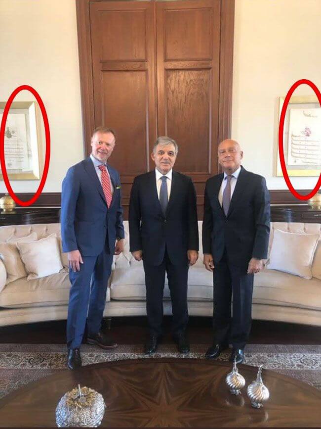 MHP Bursa Milletvekili Hidayet Vahapoğlu ziyaretten ziyade Gül ile Maki’nin poz verdiği alanda Osmanlı padişahlarının fermanlarının yer almasına tepki gösterdi.