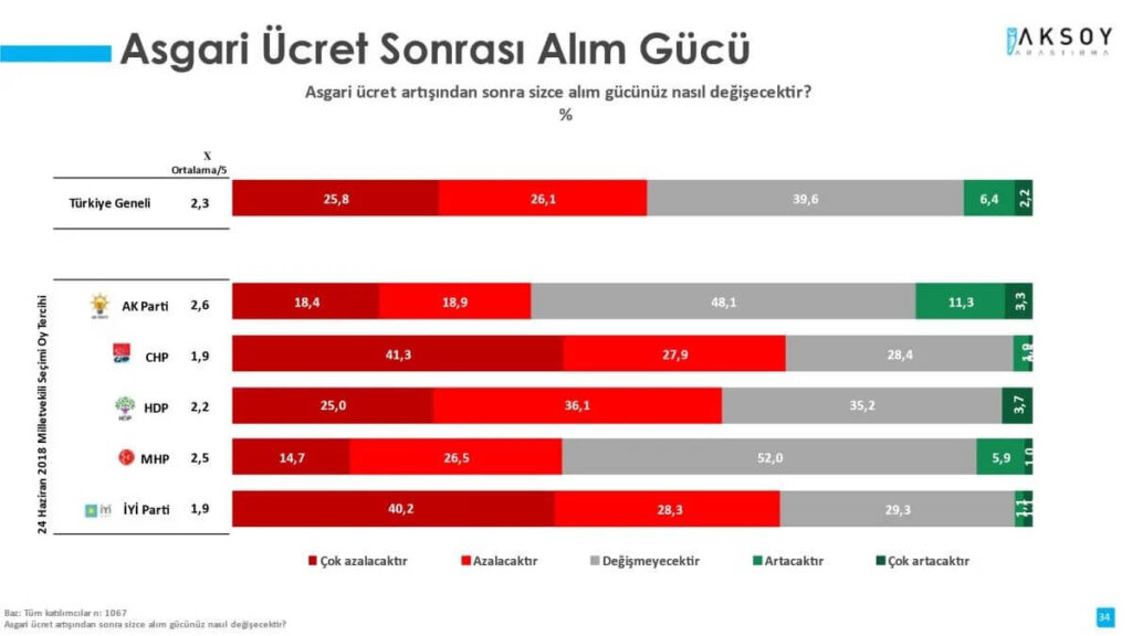 En özet haliyle ifade edersek; asgari ücret artışı toplumda AKP’ye desteği artırmayacağı gibi yeni bir hayal kırıklığı daha yarattı. Bu durumun benzerini sene başında yapılan artışın ardından da görmüştük. Sene başında yapılan artış, sorunu çözmediği gibi umudu da kırdığı için, AKP oyunda bir miktar gerileme yaratmıştı. İkinci kez bu deneyimin ortaya çıkması bu kez daha fazla oy kaybettirme potansiyeline sahip. İzleyeceğiz.