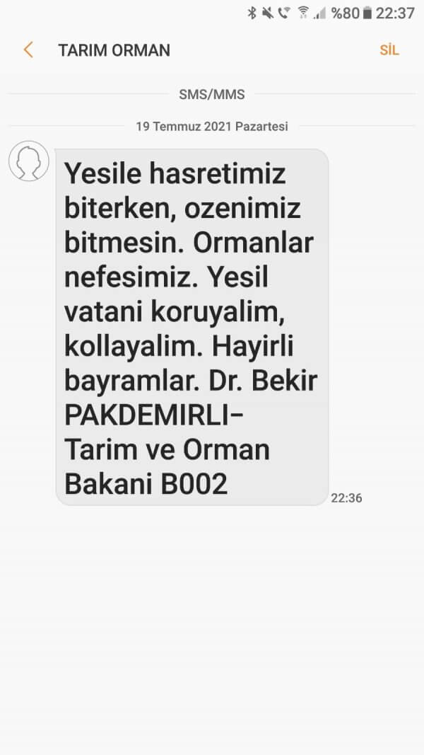 Tarım ve Orman Bakanı Bekir Pakdemirli’nin vatandaşların telefonlarına attığı mesaj ortalığı karıştırdı.