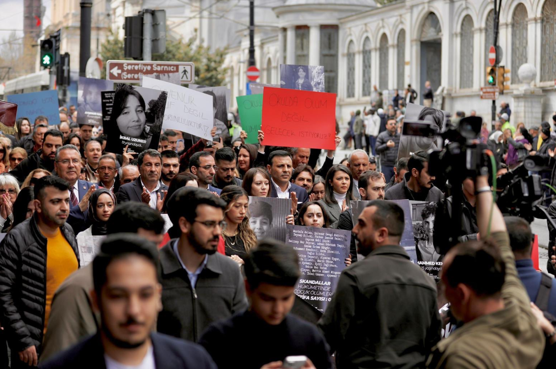 Çemberlitaş Meydanı’nda toplanan CHP’liler İstanbul İl Milli Eğitim Müdürlüğü önüne sessiz yürüyüş gerçekleştirdi. CHP İstanbul il Başkanı Özgür Çelik, ilçe başkanları, gençlik kolları, kadın kolları, il ve ilçe örgütü ile CHP PM üyelerinin de katıldığı yürüyüşte slogan atılmazken sık sık protesto amaçlı alkış tutuldu. “Güvenli okullar istiyoruz, yaşamak istiyoruz” yazılı pankartın açıldığı yürüyüşte, Kahramanmaraş’ta Ayser Çalık Ortaokulu’nda yaşanan silahlı saldırıda yaşamını yitiren ve yakın zamanda katledilen çocukların, gençlerin isimlerinin ve fotoğraflarının yer aldığı dövizler taşındı.