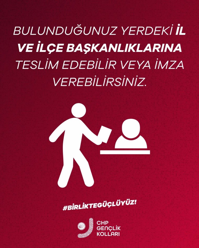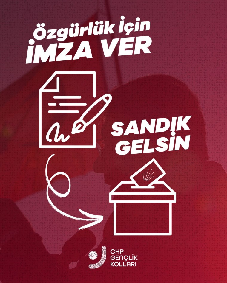 Açıklamada, “Değerli genç arkadaşım, Cumhurbaşkanı Adayımız Ekrem İmamoğlu’na özgürlük demek ve erken seçim sandığının kurulması için gerçekleştireceğimiz imza kampanyamızı başlatıyoruz.
