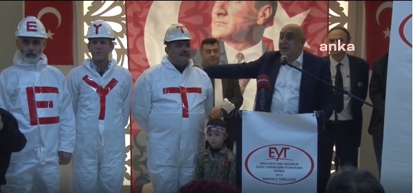 “Küçük topluluklar halinde başlayan ve dalga dalga ülkemizin her bir köşesine ulaşan, bugün milyonlarca mağduru bir araya toplayan, aile kavramını oluşturan Emeklilikte Yaşa Takılanlar, tarihe mal olacak bir mücadelenin EYT Federasyonu çatısı altında emin adımlarla ilerliyoruz. Bu meşakkatli yolda yürürken önümüze çıkan tüm engelleri aşıyoruz ve aşacağız. Bu dava alın teri davasıdır. Kimsenin şahsi emellerine alet olmayacak kadar yüce bir davadır. Milyonlarca insanın umudunu barındıran, vebale girilmeyecek kadar kutsal bir davadır.”