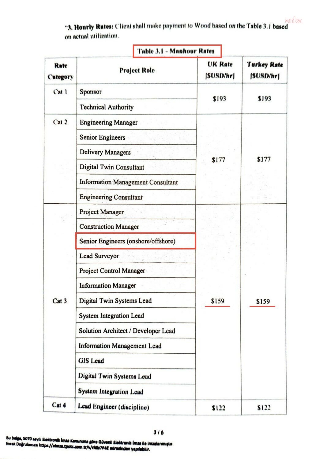 CHP’li Yavuzyılmaz’ın açıklamasına göre, TP-OTC’nin Wood Group ve Amec Foster şirketleriyle yaptığı “Teknik Hizmet Sözleşmesi” kapsamında, kıdemli yabancı mühendislere saatlik 159 dolar ödeme yapılıyor. Bu rakam aylık 38 bin 160 dolara, yani güncel kurla yaklaşık 1 milyon 600 bin TL’ye denk geliyor. Yeni mezun yabancı mühendisler ise saatlik 55 dolar, yani aylık 13 bin 200 dolar (yaklaşık 555 bin TL) kazanıyor.