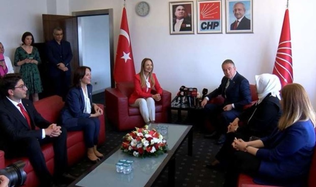CHP Kadın Kolları Genel Başkanı Aylin Nazlıaka Başkanlığındaki kabul heyetinde ise Ankara Milletvekili Aliye Timisi Ersever ile Gençlik Kolları MYK Üyesi Uygar Elitog yer aldı. Görüşmede İsveç’te yapılan Kur’an-ı Kerim yakma eylemi, 28 Mayıs Cumhurbaşkanlığı 2. Tur Seçimleri ve 6 Şubat depremleri ele alındı.