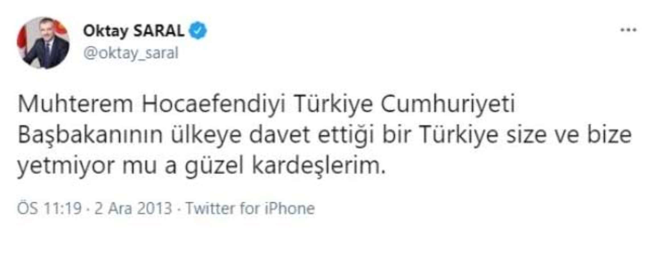 Öte yandan Saral’ın 15 Temmuz öncesinde FETÖ elebaşı Fethullah Gülen’e de ‘Muhterem Hocaefendi’ dediği ortaya çıktı.