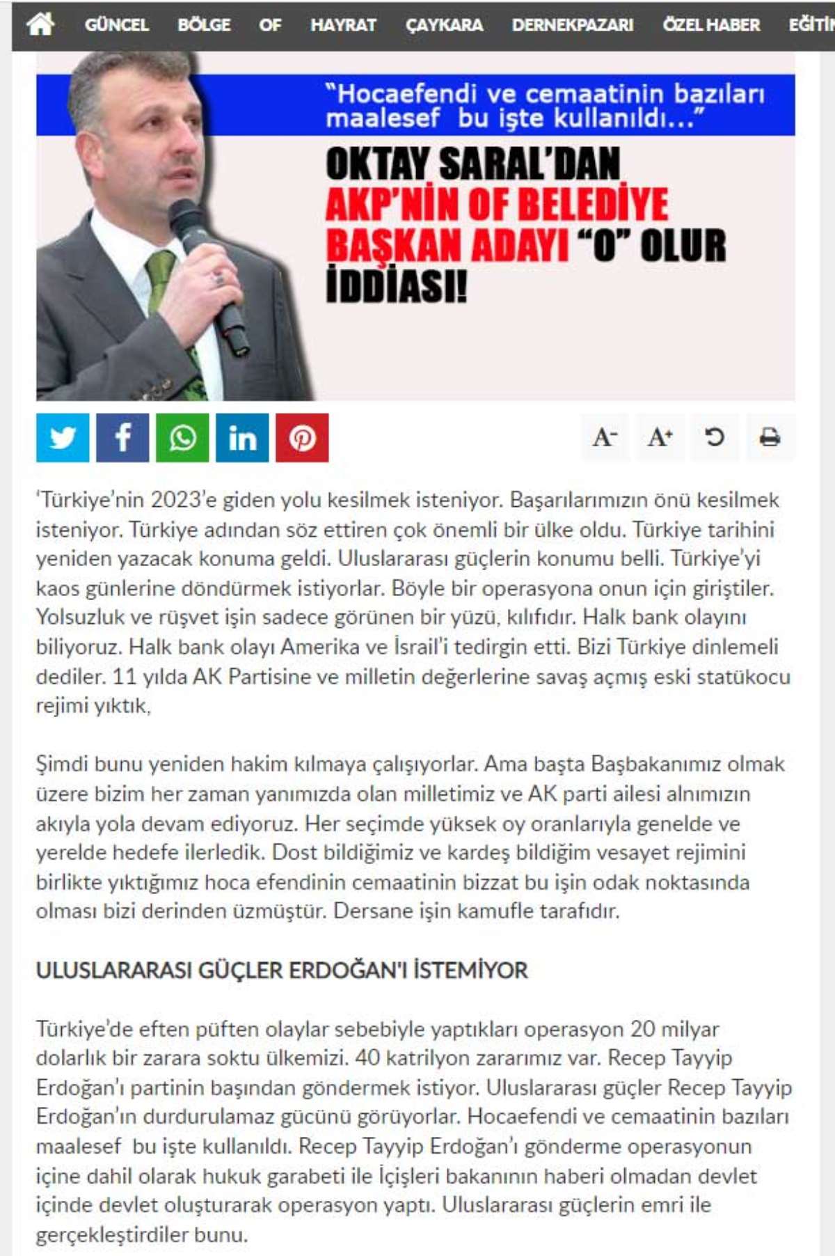 Saral’ın sosyal medyada yaptığı paylaşımın yanı sıra bir yerel gazeteye verdiği röportajda da Gülen’e ‘Muhterem hocaefendi’ diye hitap ettiği görüldü.