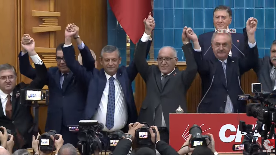 CHP grup toplantısında Doğan Demir’in rozetini CHP Genel Başkanı Özgür Özel taktı.