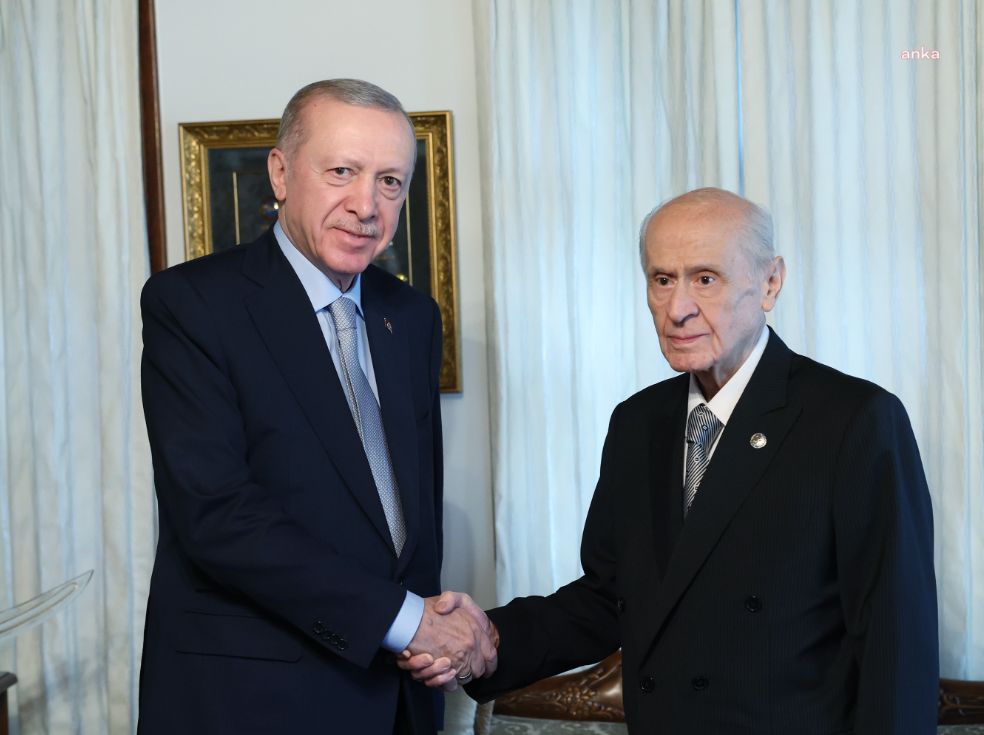 Devlet Bahçeli, Cumhurbaşkanı Erdoğan’ı kapıda karşıladı. Basına kapalı gerçekleştirilen görüşme yaklaşık 40 dakika sürdü.
