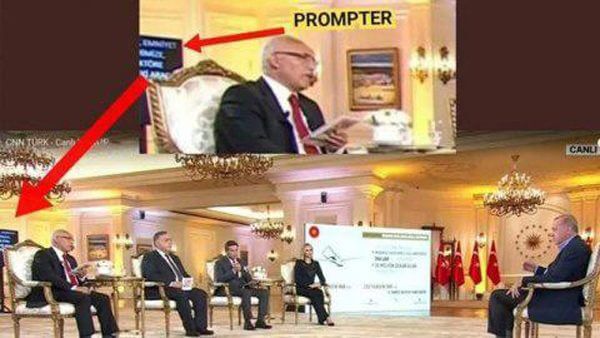 Canlı yayın sürerken oluşan bu merak, çok geçmeden yerini sosyal medyaya yansımaya başlayan ekran görüntülerine bıraktı. Doğal olarak tartışma da sonlandı. Çünkü; CNN Türk ve Kanal D ekranından çekilen fotoğraflarda, Erdoğan’ın karşısına yerleştirilen ‘prompter’ açıkça görülüyordu. Kısacası; Erdoğan önceden hazırlanmış ve gazetecilerin eline tutuşturulmuş soruları doğaçlama olarak değil, ekrana düşen yazılardan okuyarak cevaplıyordu.