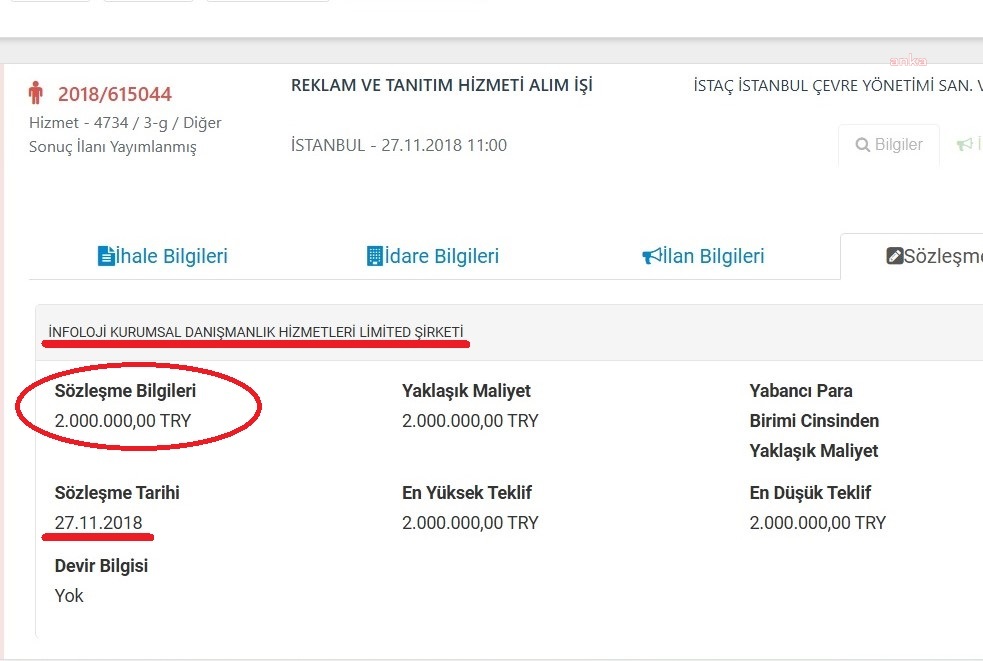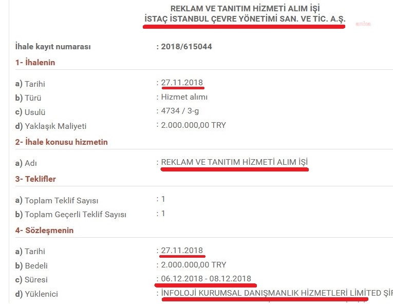 Ekrem İmamoğlu’nun İBB Başkanı seçilmesinin ardından AK Parti dönemine ilişkin incelettirdiği çok sayıda ihale dosyasından biri olan 30 Ekim 2018 tarihinde İBB Bilgi İşlem Daire Başkanlığı “Yatırım Organizasyonlarının Tanıtım ve Medya Çalışmaları İşi” başlığı altında ihale açtı. İhale 26 milyon 585 bin TL’ye İBB’nin şirketi Medya A.Ş.’ye verilmişti.