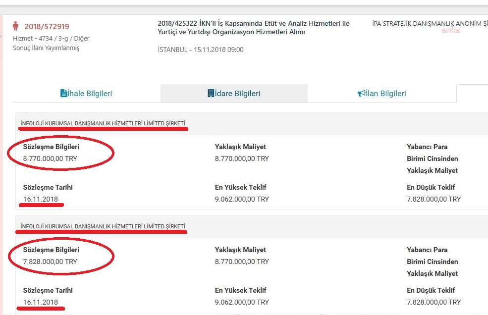 Kamu İhale Kurumu verileri üzerinden yapılan incelemede, yine Muhammed Attila Sevim tarafından 2012 yılında kurulan, “İnfoloji Kurumsal Danışmanlık Hizmetleri Ltd. Şirketi”, İBB ve bağlı kuruluşlarından, 2013-2019 yılları arasında 32 ihale aldığı anlaşıldı.