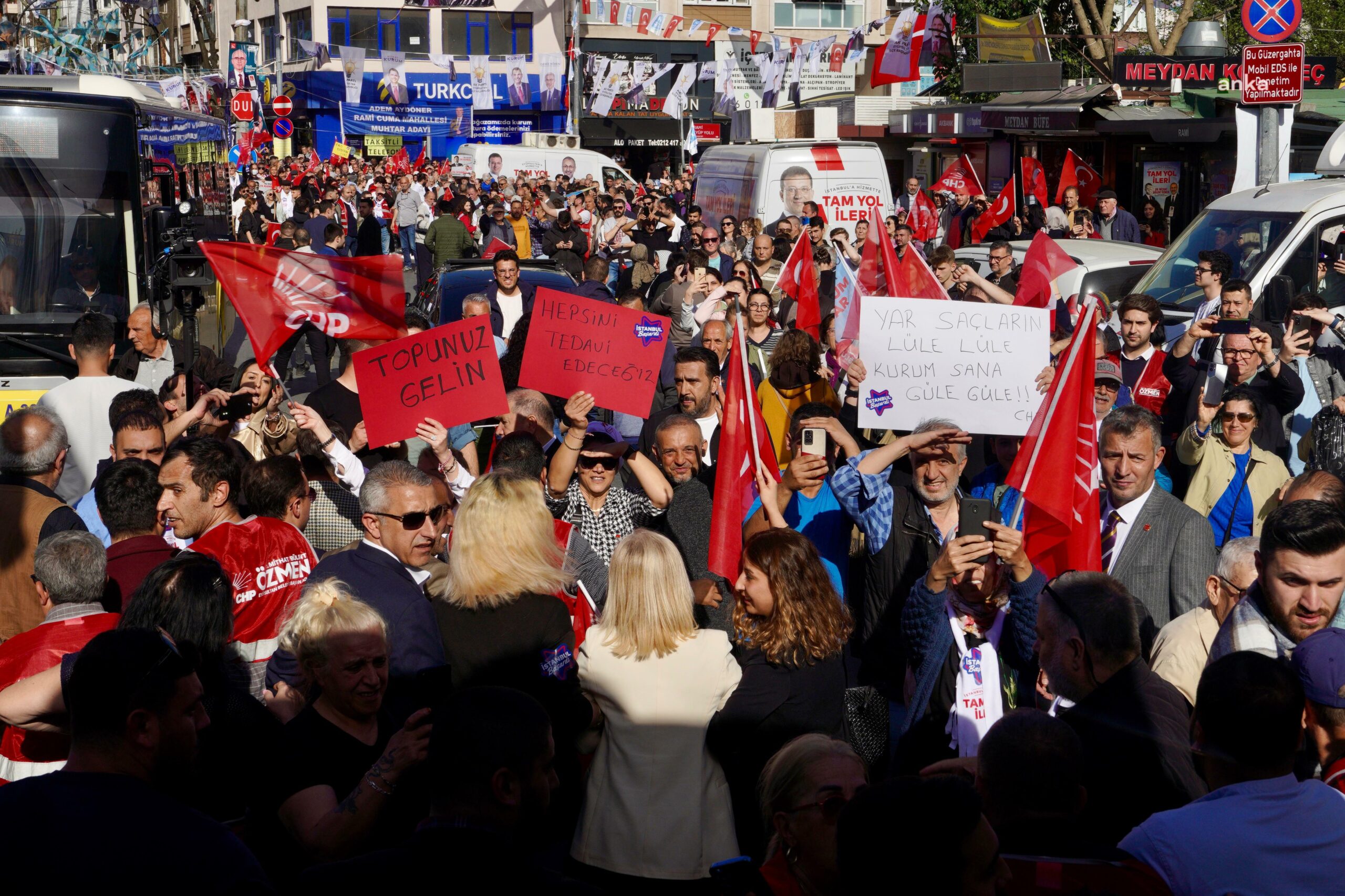 “Bugün Eyüpsultan’da vatandaşı selamlayalım istedik ama Rami’de siz, bizim önümüzü kestiniz. Sizleri burada görmek, elbette büyük bir moral, büyük bir motivasyon. Şu an itibariyle şunu söyleyeyim: Ekrem İmamoğlu kardeşiniz, arkadaşınız, evladınız bütün vatandaşlarımıza eşit hizmet etti; bundan sonra yine eşit hizmet etmeye devam edecek. Ekrem İmamoğlu’nun arkasında kabine yok, Ekrem İmamoğlu’nun arkasında 16 milyon İstanbullu var. Ekrem İmamoğlu’na talimat veren yok. Ekrem İmamoğlu’na talimat veren, fikrini söyleyen 16 milyon İstanbullu var. İstanbullu ne derse, İstanbul’u ne isterse onu yapar. Aynı şekilde değerli başkan adayımız, değerli dostum Bülent Özmen, devlet adamı kimliğini en iyi taşıyacak insanlardan birisi, Eyüpsultanlı. Eyüpsultan’a hizmet vermeye, sizlerle birlikte hazır. Sizlerle birlikte başaracak, hep birlikte. Oyları bölmeye asla gerek yok. Merkez tek. İstanbul’da oylar İmamoğlu’na, Eyüpsultan’da oylar Bülent Özmen’e.