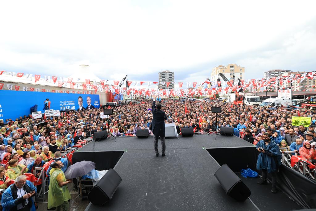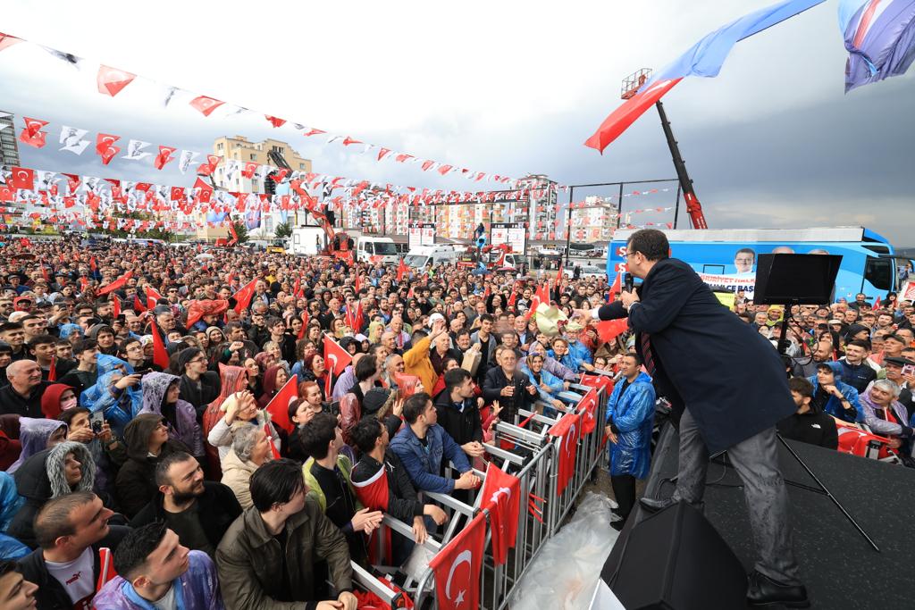 İstanbul’da nasıl başardıysak, huzurlu ve müreffeh Türkiye’yi sizlerle başaracağız. 14 Mayıs’ta Türkiye’nin kaderine hep birlikte el koyuyoruz. Gelin, çocuklarımızın ve gençlerimizin geleceği için, hep birlikte harekete geçelim. Millet İttifakı’nın liyakatli kadrolarına görev ve yetki verelim. 13. Cumhurbaşkanı Sayın Kemal Kılıçdaroğlu’nu iş başına getirelim” dedi. Kalabalığın arasından ‘Sinan Ateş size emanet Ekrem Abi’ pankartını gören İmamoğlu, “Kesinlikle Sinan Ateş de bize emanet sevgili kardeşim. Hukuksuzluğa uğramış, adaletsizliğe uğramış kim varsa, onlar için sonsuz mücadele vereceğiz. Bizim milliyetçiliğimizi, bayrak-vatan sevgimizi ağızlarına alıp, Allah’ın günü dedikodu yapmalarına bakmayın. Kurdukları bu bozuk ve adaletsiz düzeni devam ettirmek için bunu yapıyorlar. Bu ülkenin pırıl pırıl evlatlarının mülakatlarda hakları yenirken milliyetçilik neredeydi? Bu ülkenin iyi yetişmiş beyinleri, bu ülkeyi terk etmeye zorlanırken hani milliyetçiliğiniz? Şehitlerimizin kanıyla kurulan bu ülkenin vatandaşlığını 250 bin dolara ne idiğü belirsiz kişilere satarken, neredeydi milliyetçiliğiniz? Bak, o vatandaşlık sattığınız insanlar, uyuşturucu baronu çıkıyor. Bilmem nerenin mafyası çıkıyor. Nerede milliyetçiliğiniz?” ifadelerini kullandı..