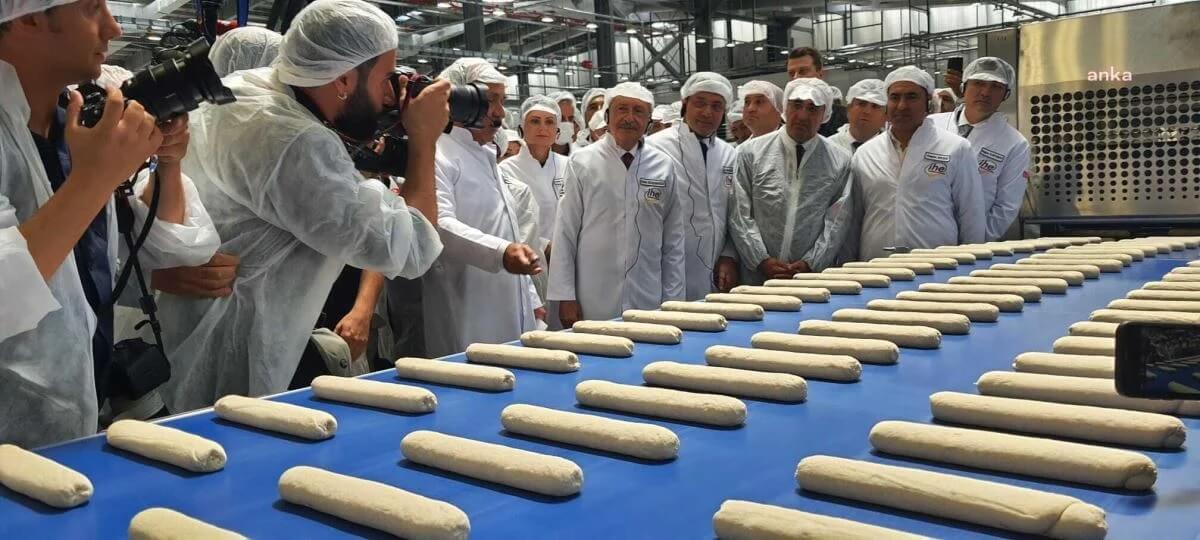 Açılışın ardından tesisi gezen CHP lideri Kılıçdaroğlu ve İBB Başkanı İmamoğlu ile beraberindekiler bölüştükleri ekmeği zeytin, peynir ile yediler.