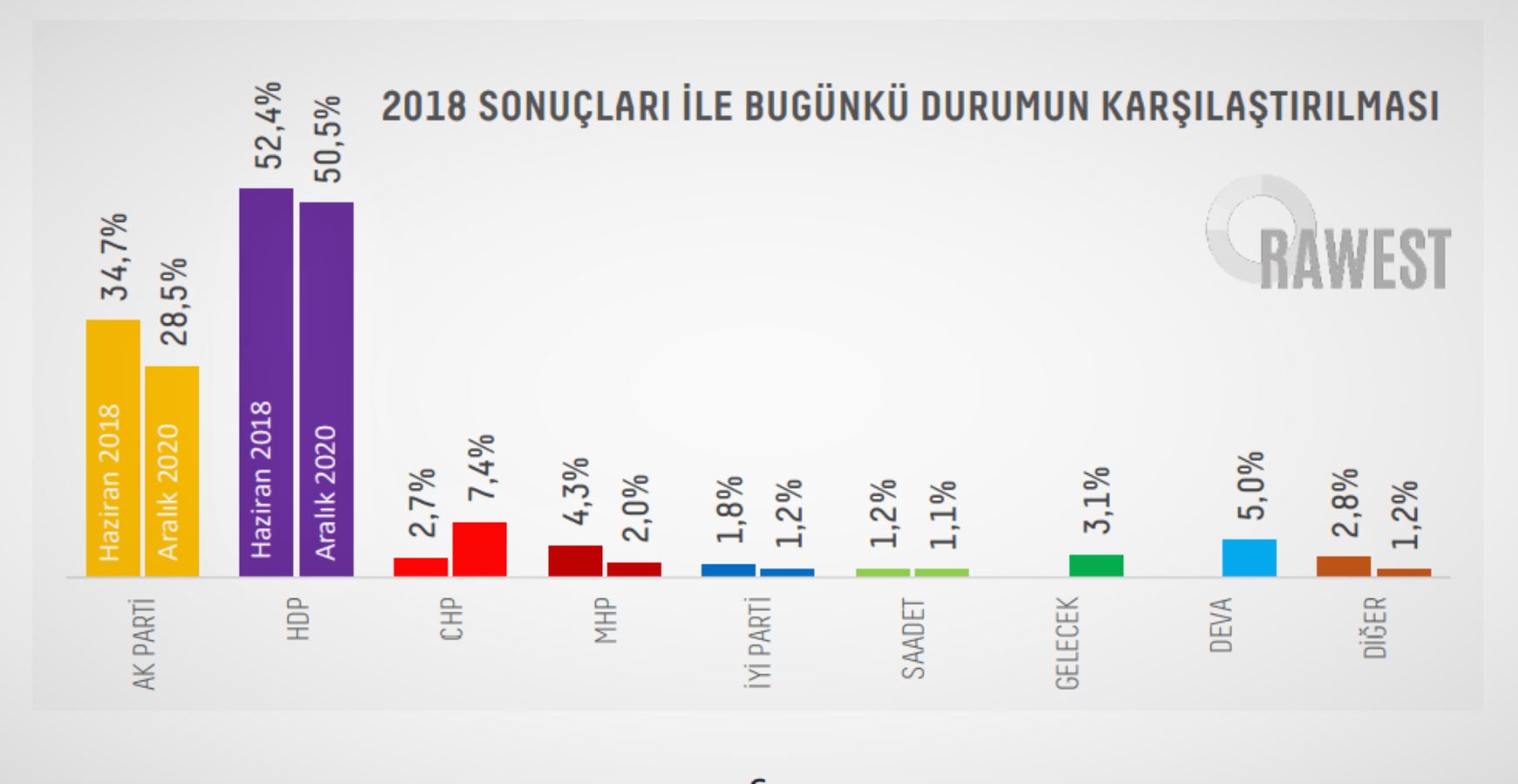 “Rawest’in bir özelliği anket sorularını doğu ve güneydoğuda kullanılan dört anadilde sorup yanıt almaları. Örneğin Ocak 2021’de yayınladıkları Siyasi Eğilimler araştırmasının künyesinde, anketin Diyarbakır, Van, Şanlıurfa ve Mardin illerindeki 20 ilçe ve 100 mahallede, yüzde 85’i Kürtçe ve Zazaca, yüzde 15’i de Türkçe ve Arapça olmak üzere 1497 kişiyle yüz yüze yapıldığı yazılı.