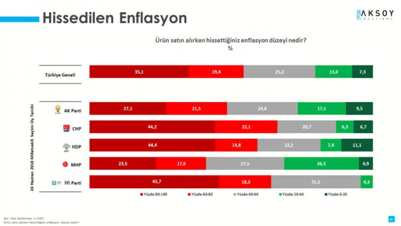 Araştırmaya katılanlar arasında en önemli sorun olarak hayat pahalılığı öne çıktı. Araştırmaya katılanların yüzde 35,1’i enflasyonu yüzde 80-100 olarak hissettiğini belirtti.