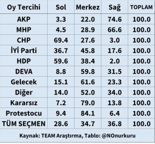 Partilerin sol-merkez-sağ seçmen dağılımı (TEAM)