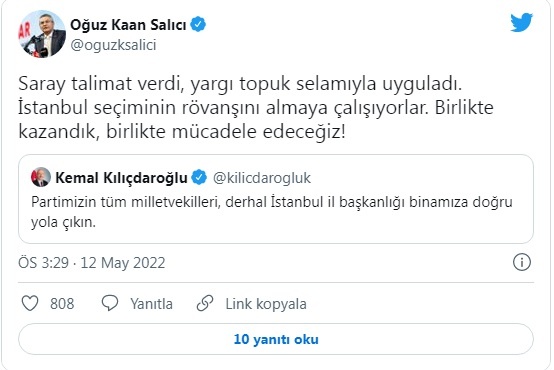 Açıklanan karardan sonra CHP Genel Başkanı Kemal Kılıçdaroğlu sosyal medya hesabından partisinin bütün milletvekillerini İstanbul İl Başkanlığı’na çağırdı. Kılıçdaroğlu’nun da İstanbul’a doğru yola çıktığı öğrenildi. Yargıtay’ın kararının ardından CHP’li milletvekilleri Twitter’dan tepki gösterdi. Vekillerin mesajları şu şekilde: