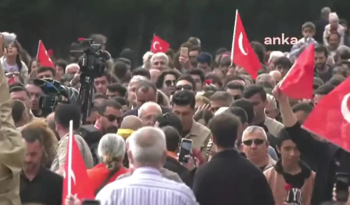 Anıtkabir’i ziyaret ederken Kemal Kılıçdaroğlu ile karşılaşan yurttaşlar İzmir Marşı’nı söyledi.
