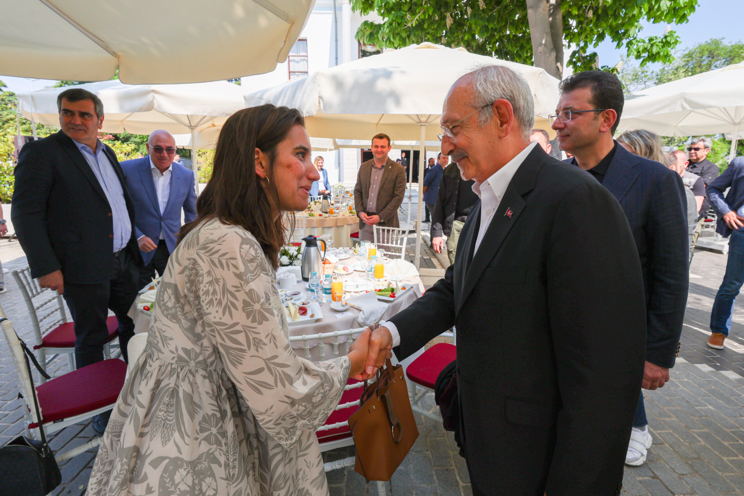 CHP Genel Başkanı Kemal Kılıçdaroğlu, Gezi davasında hukuksuz biçimde 18 yıl hapisle cezalandırılan Mücella Yapıcı, Tayfun Kahraman, Mine Özerden, Çiğdem Mater, Yiğit Ali Ekmekçi, Ali Hakan Altınay ve Can Atalay’ın aileleri ile avukatlarıyla kahvaltıda bir araya geldi. Emirgan Korusu’ndaki Beyaz Köşk’te gerçekleştirilen buluşmaya; CHP İstanbul İl Başkanı Canan Kaftancıoğlu, CHP Kadın Kolları Genel Başkanı Aylin Nazlıaka, İBB Başkanı Ekrem İmamoğlu, eşi Dilek Kaya İmamoğlu ile 10 CHP milletvekili katıldı. Buluşmada konuşan Kılıçdaroğlu, insanlık tarihinin demokrasi konusunda verilen mücadeleler tarihi olduğunu vurguladı. “
