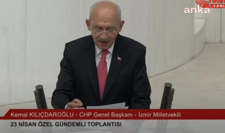CHP Genel Başkanı ve Millet İttifakı'nın Cumhurbaşkanı adayı Kemal Kılıçdaroğlu TBMM'de 23 Nisan Ulusal Egemenlik ve Çocuk Bayramı Özel Gündemli Toplantısı'nda konuştu. Kılıçdaroğlu, "Bu kürsüden vekil sıfatıyla son sözüm şudur; milletin istiklalini, yine milletin azim ve kararlılığı kurtaracak" dedi.