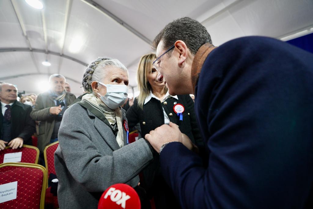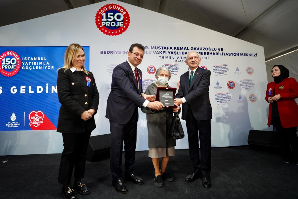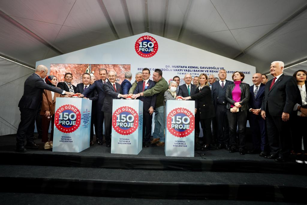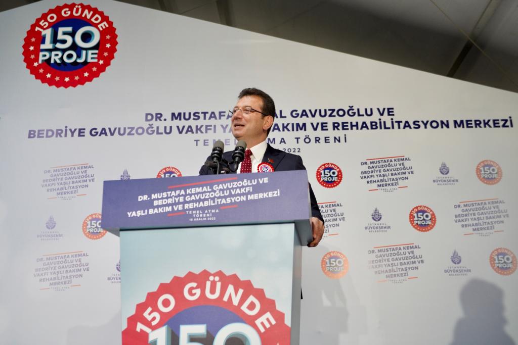 Sözlerine, “Bakmayın öyle dün olan bitene, biz, bugün çok daha hayırlı iş için bir araya gelmiş olduk” şeklinde başlayan İmamoğlu ise, “Bugün, Bedriye Hanım’ın o güzel yüreğinin bize açtığı bu fırsatı, İstanbul adına çok güzel bir hizmete dönüştürmek ve burada geleceğe dair İstanbul’un yaş almış büyüklerine, büyüklerimize güzel hizmetler sunacağımız bir merkezin hep birlikte temelini atıyoruz. 200 milyon lirayı aşkın bir yatırımla, önümüzdeki yıl inşallah bu zamanlara kadar tamamlanıp hizmete açacağımız bir temel atma töreni. Onun için şimdiden hayırlı olsun, şimdiden bu güzel hizmet, o sizin güzel kalbinizle Bedriye Hanım, sonucuna ersin diyorum. Çok teşekkür ediyorum” ifadelerini kullandı. “150 Günde 150 Proje” kampanyasının sonuna yaklaştıklarını hatırlatan İmamoğlu, “Bu kampanyamız esnasında, 168 noktada 199 projeye eriştiğimizi belirtmek isterim. Her ne kadar ‘150 Günde 150 Proje’ kavramıyla, tanımıyla yolculuğa çıksak da bugün bunun çok daha üzerinde bir sayıya eriştik. Daha da sevindirici bir hususu paylaşmak isterim. Önümüzdeki Şubat, Mart, Nisan ayları içerisinde, İstanbul’umuzda en az bir 150 projenin daha açılışını ve temel atmasını yapacağımızın da şimdiden müjdesini halkımızla paylaşmak istiyorum” bilgilerini aktardı.
