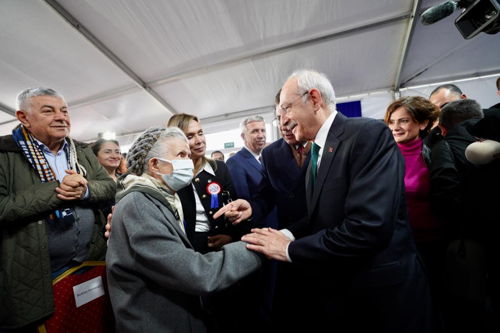 Törene katılan bağışçı Bedriye Gavuzoğlu’na teşekkürlerini ileten Kılıçdaroğlu, “Verdiğiniz katkı için selamlarımı, hürmetlerimi sunarım. Burada yaş almış İstanbullular kalacaklar. Bu çerçevede yaptığınız bağış, atacağımız temel, Ekrem Bey’in verdiği katkı, son derece değerlidir” diye konuştu. Tarihe karşı yüklendikleri bir sorumluluk olduğuna vurgu yapan Kılıçdaroğlu, “Her birimiz, bu mücadelenin bir parçası olmak zorundayız. Bu adalet mücadelesini, ne yaparlarsa yapsınlar, azim ve kararlılıkla sürdüreceğiz. İlk kez sandığa gidip oy kullanacak gençler, dünya siyaset tarihine çok güzel bir not bırakacaklar” dedi.