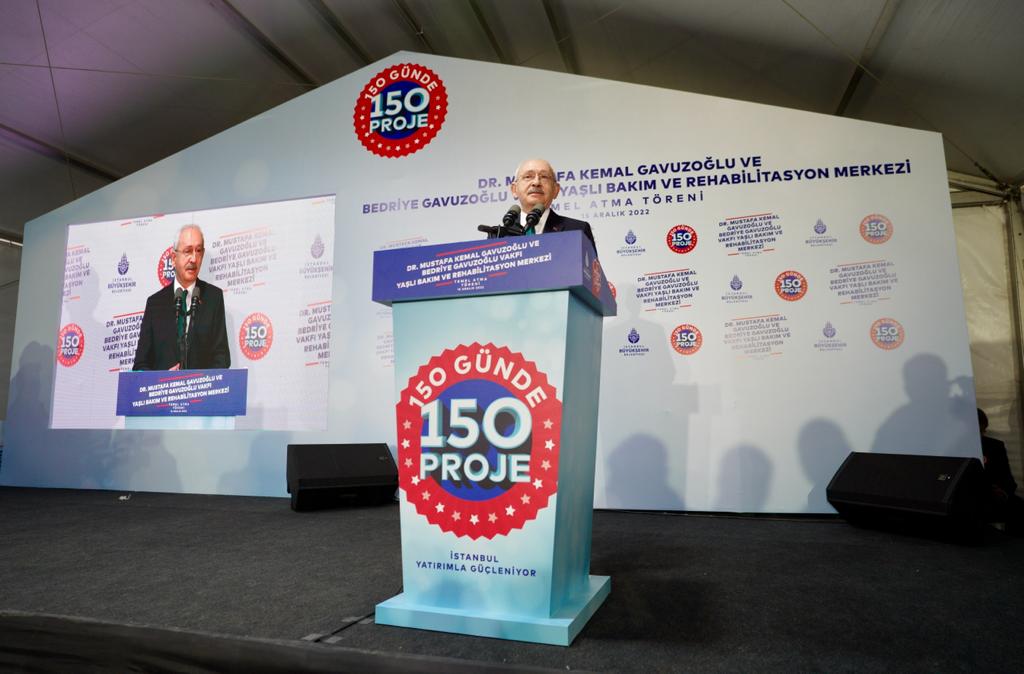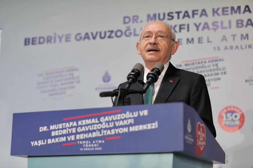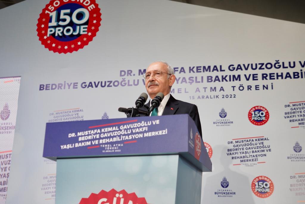 CHP Genel Başkanı Kemal Kılıçdaroğlu, İBB’nin ‘150 Günde 150 Proje’ maratonu kapsamında hizmete açacağı ‘Dr.Mustafa Kemal Gavuzoğlu ve Bedriye Gavuzoğlu Vakfı Yaşlı Bakım ve Rehabilitasyon Merkezi’nin temel atma töreninde konuştu. “Bir ülkenin yöneticileri, o ülkeyi yaşanamaz hale getirirlerse, bize düşen büyük bir sorumluluk var: Halkı aydınlatmak” diyen Kılıçdaroğlu, “Ama siz yargıyı etkiliyorsanız, bize düşen görev, demokrasiyi yeniden inşa etmek. İstanbul’u kaybetmenin acısını, hala yüreklerinde hissediyorlar. İstanbul’un rantına doymadılar. Bu kadar harama tamah eden bir anlayış nasıl olur da iktidar olabilir, aklım almıyor. Bizler hep birlikte bunun mücadelesini yapacağız” şeklinde konuştu. Törende konuşan İBB Başkanı Ekrem İmamoğlu da “Bana verilen bu anlamsız ve hukuksuz cezayı, başarımın ödülü olarak görüyorum. İsraf düzenlerine son vermenin, onları çok kızdırdığını biliyorum. Genel Başkanımızın huzurunda, ilk günkü gibi, bugün de başım dik, alnım açık, göğsümü gere gere söylüyorum: 2023 yılı çok güzel olacak. Çok çalışacağız. İstanbul’dan işimizi yapmaya devam edeceğiz. İşimizin başındayız. Ve göreceksiniz, memleketimiz adına 2023, bayram gibi bir yıl olacak” ifadelerini kullandı.