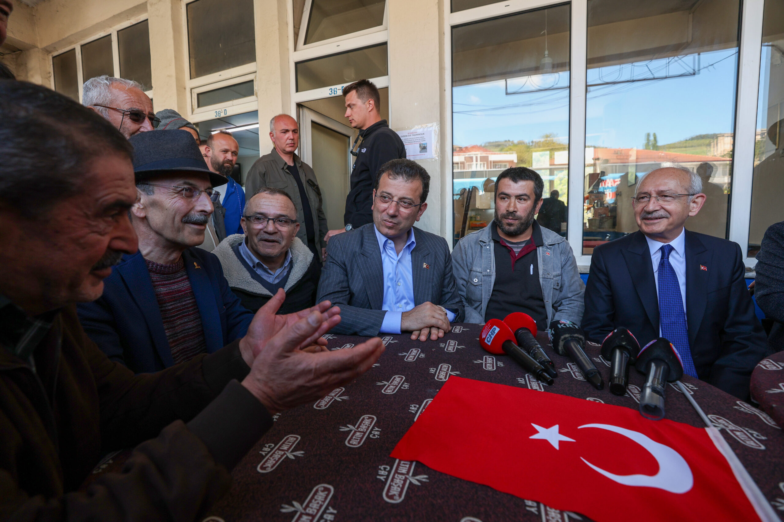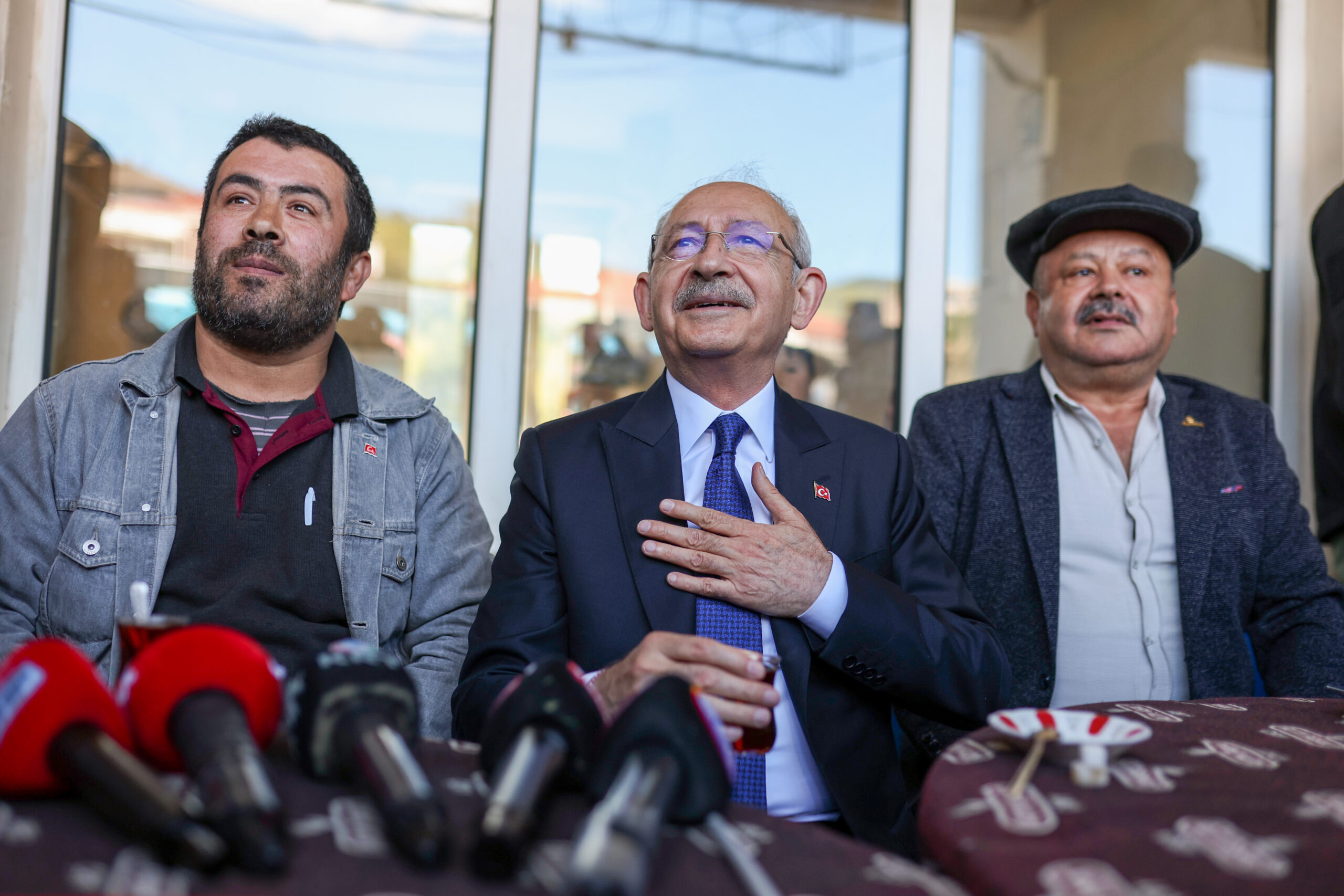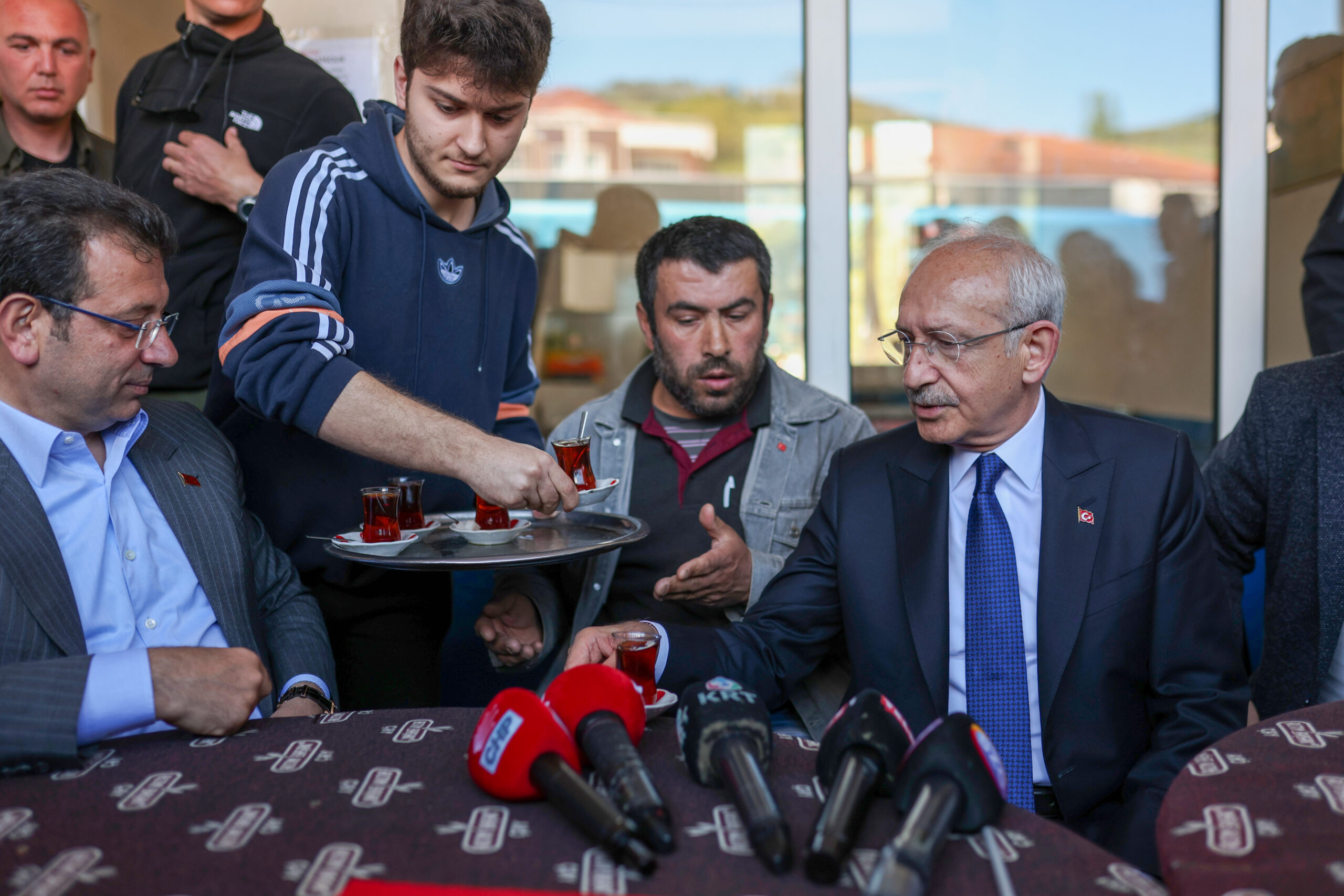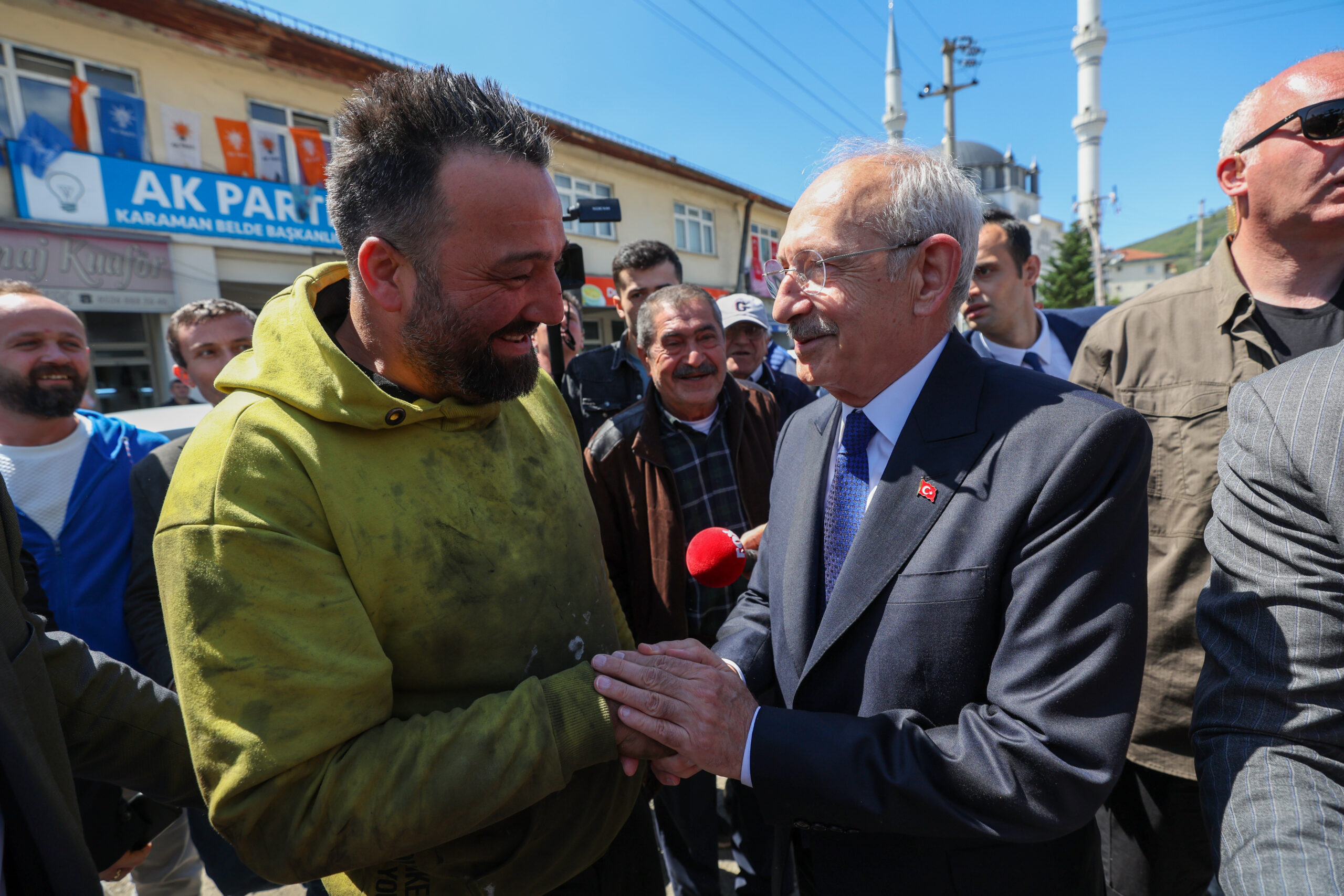 CHP Genel Başkanı ve Cumhurbaşkanı Adayı Kemal Kılıçdaroğlu daha sonra, Karaman Beldesinde otobüsün önünü kesen vatandaşların davetini kabul ederek çay içti.