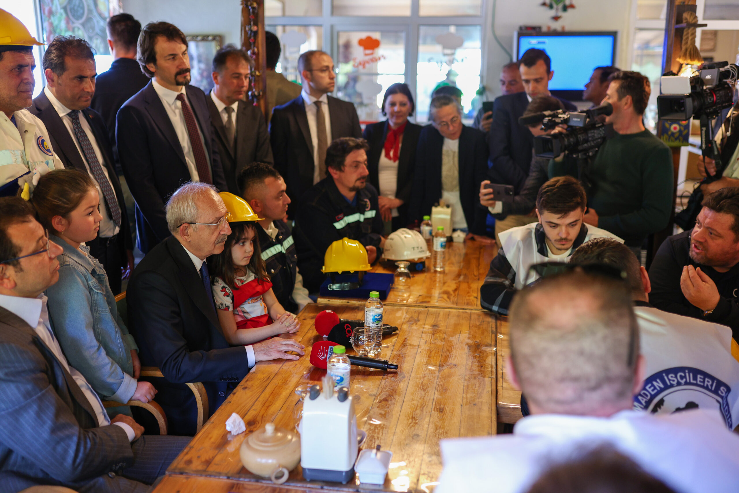 Cumhuriyet Halk Partisi Genel Başkanı ve Millet İttifakı Cumhurbaşkanı Adayı Kemal Kılıçdaroğlu Zonguldak mitinginin ardından, Kahramanmaraş merkezli depremlerde yüzlerce hayatı kurtaran kahraman madencilere teşekkür ziyaretinde bulundu.