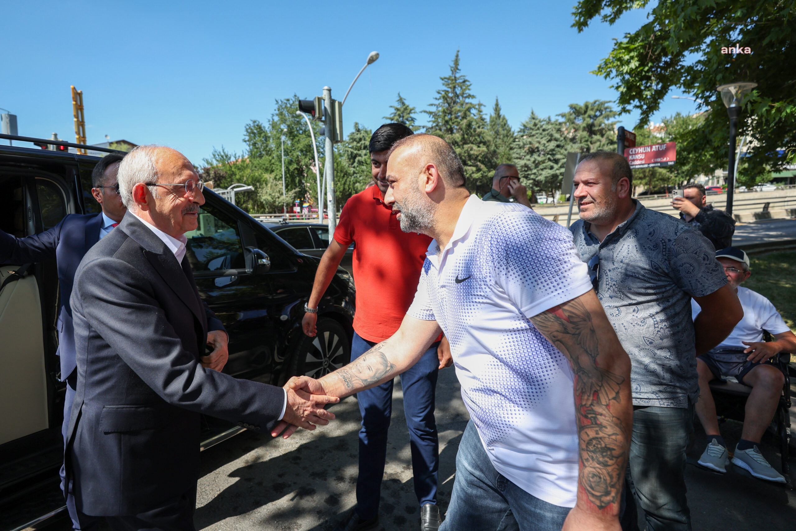 Taksiciler, Kemal Kılıçdaroğlu’na çay ikramında bulundu. Kılıçdaroğlu, taksicilerle çay içip sohbet etti.