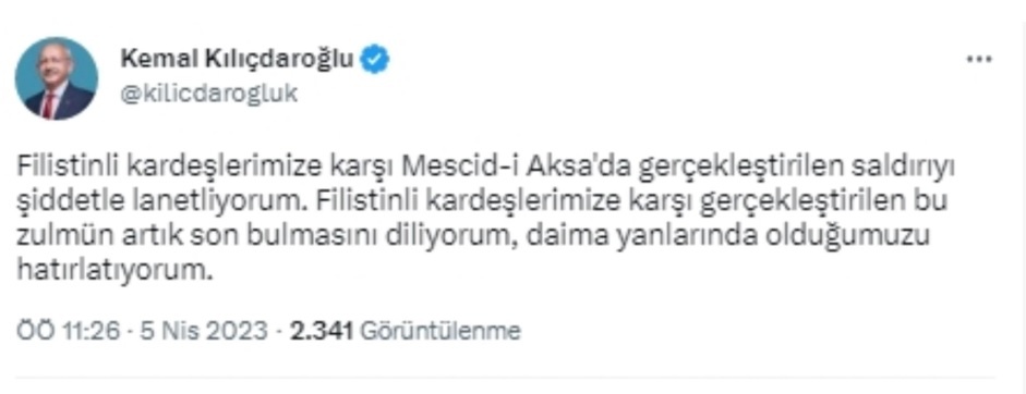 Kılıçdaroğlu: Mescid-i Aksa’daki saldırıyı şiddetle lanetliyorum
