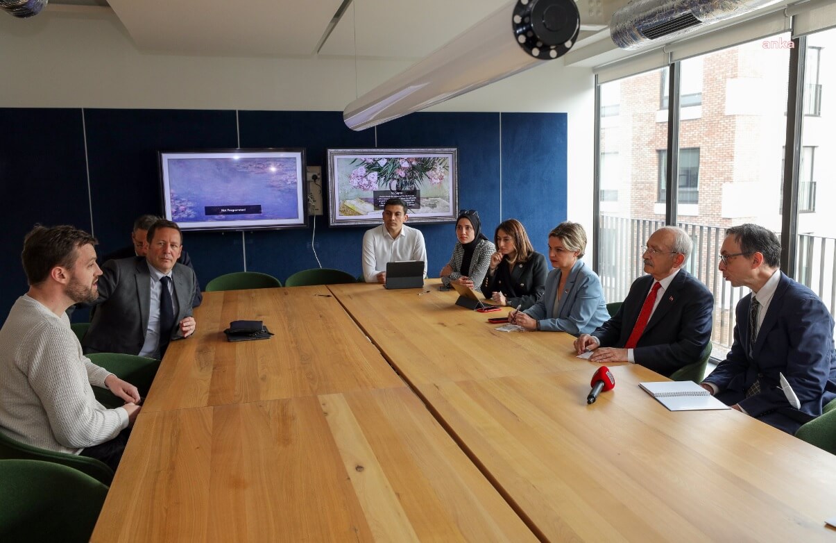 CHP Genel Başkanı Kemal Kılıçdaroğlu’nun, üç gün sürecek İngiltere temasları başladı. Kılıçdaroğlu bugün ilk olarak, teknoloji alanındaki girişimcilere destek veren “Entrepreneur First” yetkilileri bir araya geldi. Kılıçdaroğlu’na ziyarette; CHP Sözcüsü ve Genel Başkan Yardımcısı Faik Öztrak, CHP Genel Sekreteri Selin Sayek Böke, CHP İstanbul Milletvekili Yunus Emre ve CHP Bartın Milletvekili Aysu Bankoğlu eşlik etti.