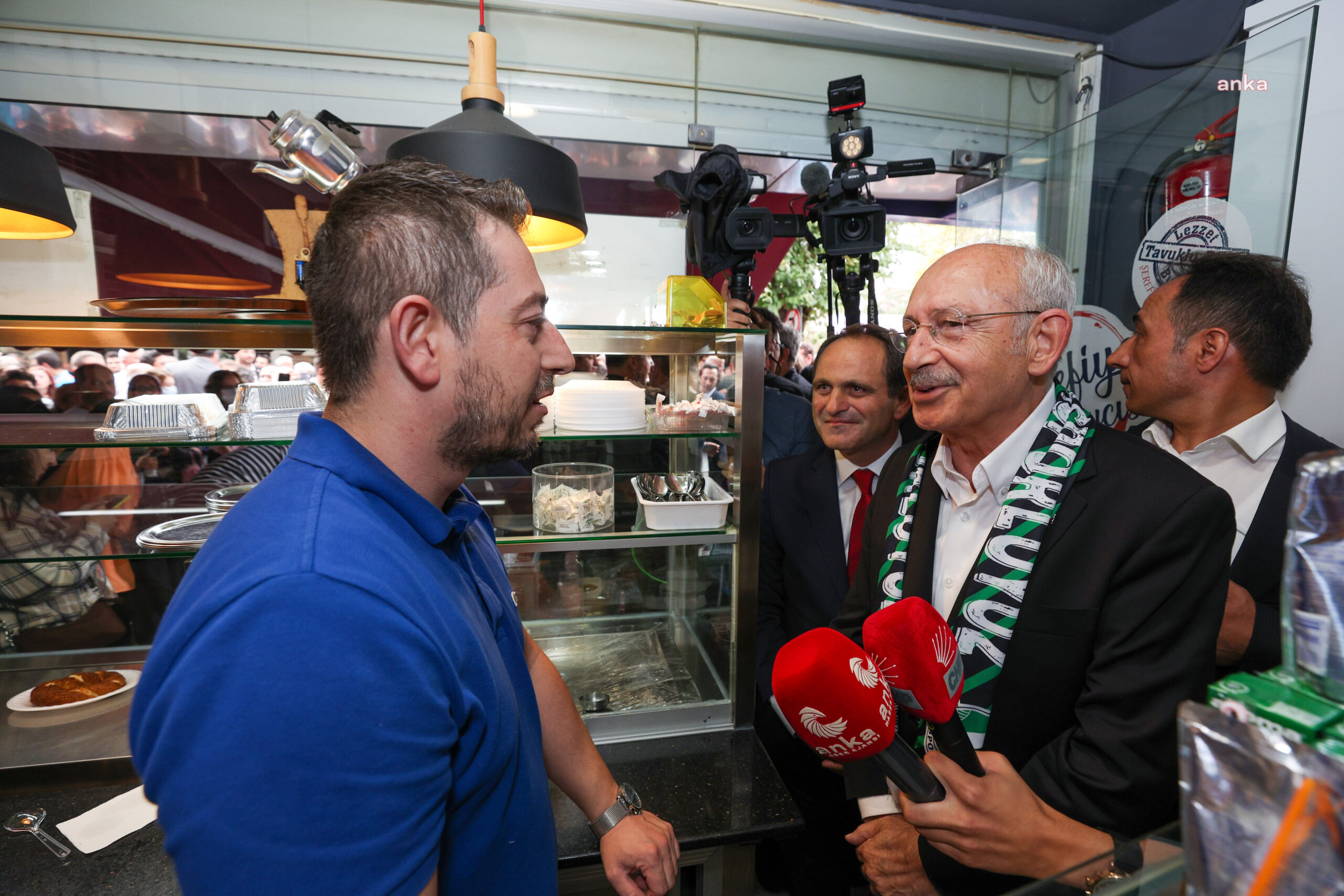 Daha sonra bir çay ocağına da uğrayan Kılıçdaroğlu’na esnaf, Sakaryaspor atkısı hediye etti. 13 yıldır çalıştığını belirten esnafa işlerin nasıl olduğunu soran Kılıçdaroğlu, “İyi” yanıtını aldı. “Hayırlı, bereketli işler diliyoruz. Daha çok kazanmanızı, daha çok mutlu olmanızı istiyoruz” diyen Kılıçdaroğlu’na esnaf da “Hepimiz, ülke olarak kazanalım” dedi.