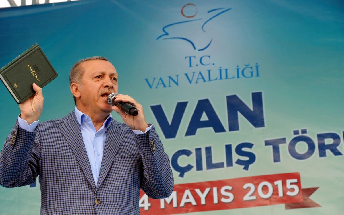 Seçim mitinginde Kuran: 2015 seçimleri öncesinde miting düzenlediği Siirt ve Şanlıurfa’da, kürsüye elinde Kuran ile çıktı. Muhalefeti, Kuran’ı göstererek eleştiren Erdoğan, “Kuran ne diyorsa onu yaparsın” dedi.