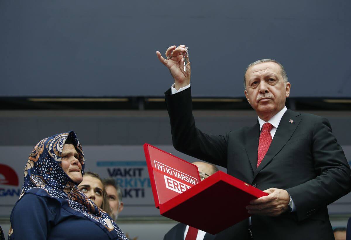 Şehidin annesine anahtar: 2018’de, terör örgütü PKK tarafından katledilen Eren Bülbül’ün annesi Ayşe Bülbül’e, miting sahnesinden ev anahtarı verdi.